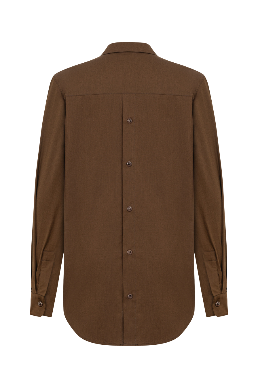 Arkası Düğme Detaylı Kahverengi Gömlek