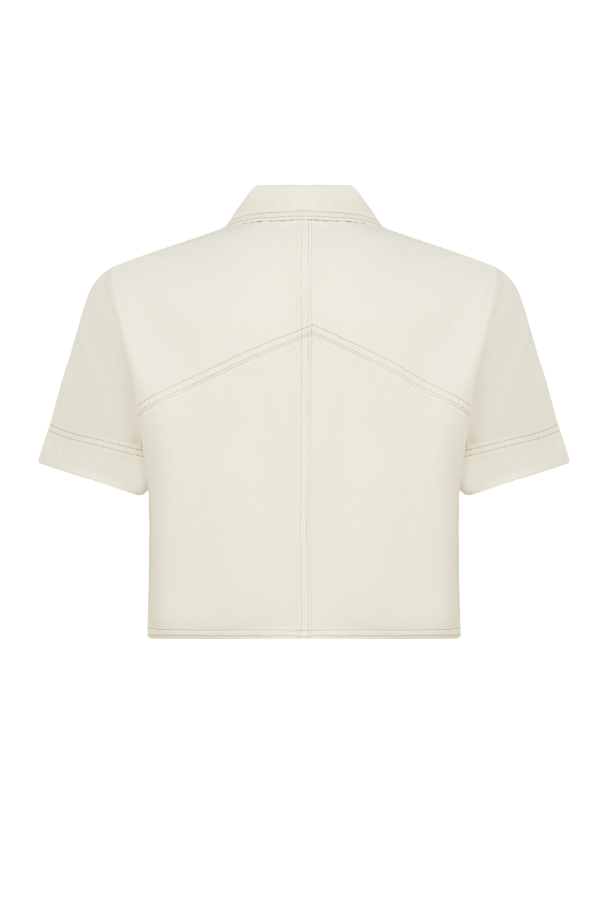 Gold Düğmeli Beyaz Denim Ceket