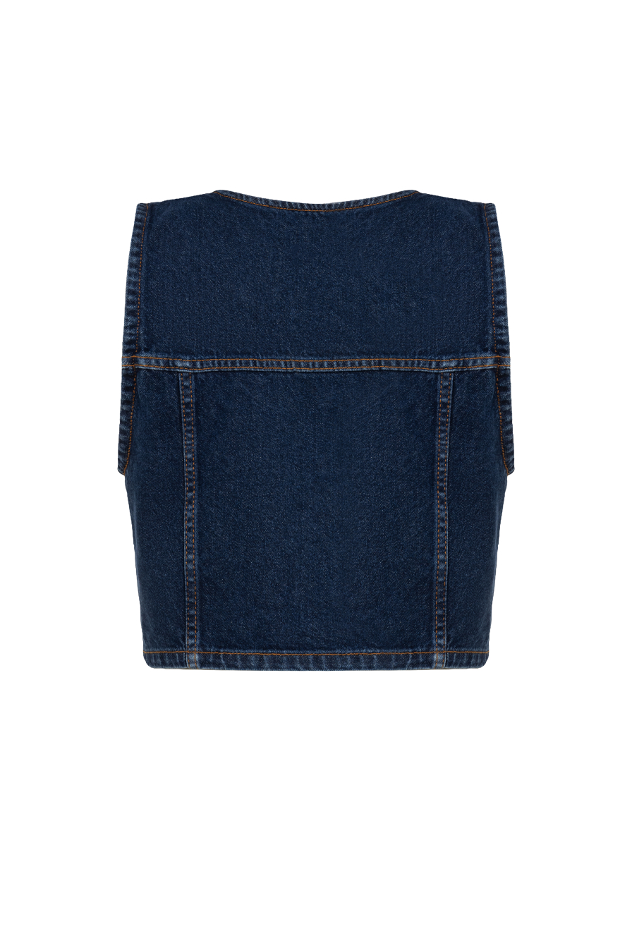 Gold Düğmeli Lacivert Denim Yelek