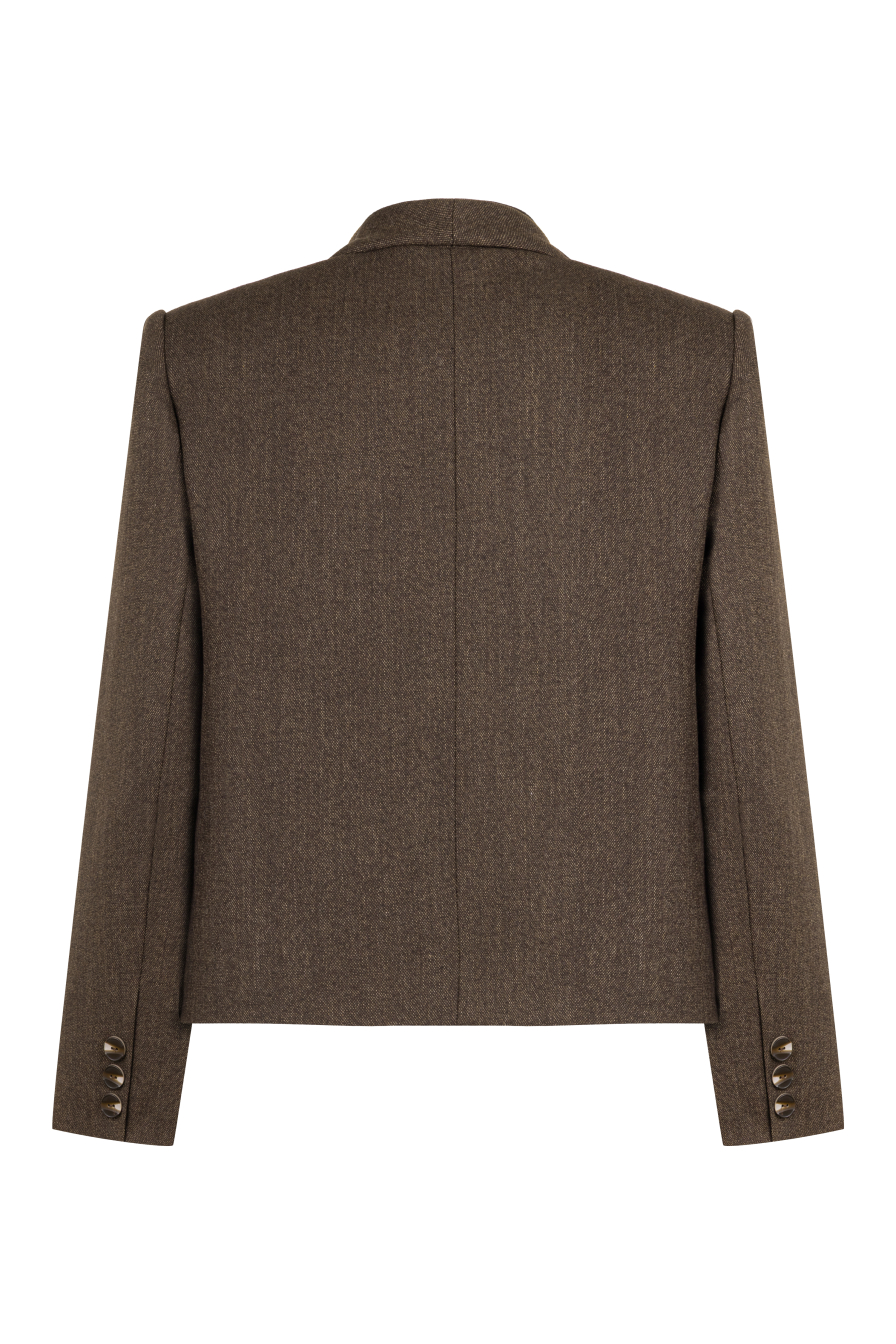 Kahverengi Cep Detaylı Crop Yünlü Ceket