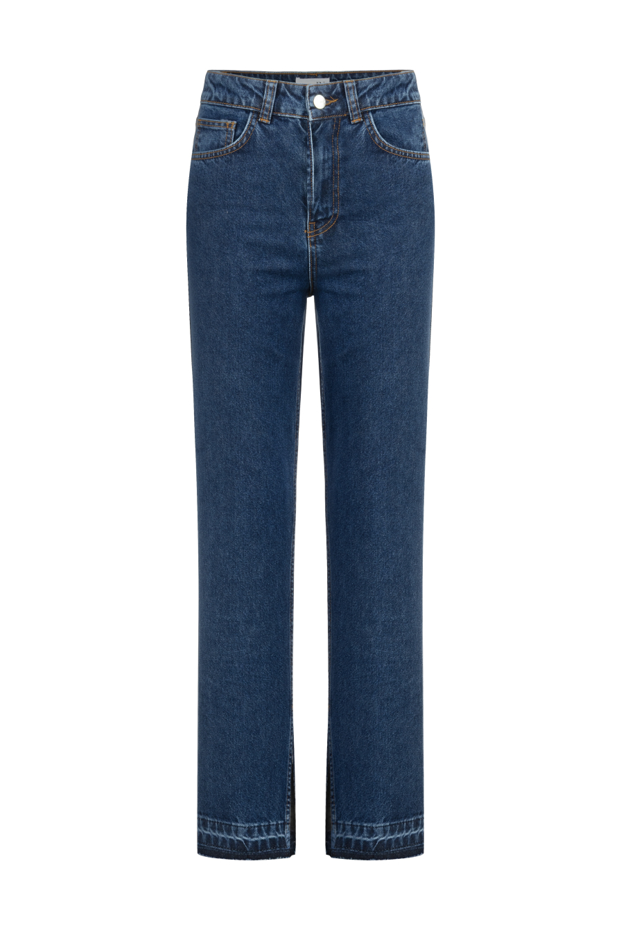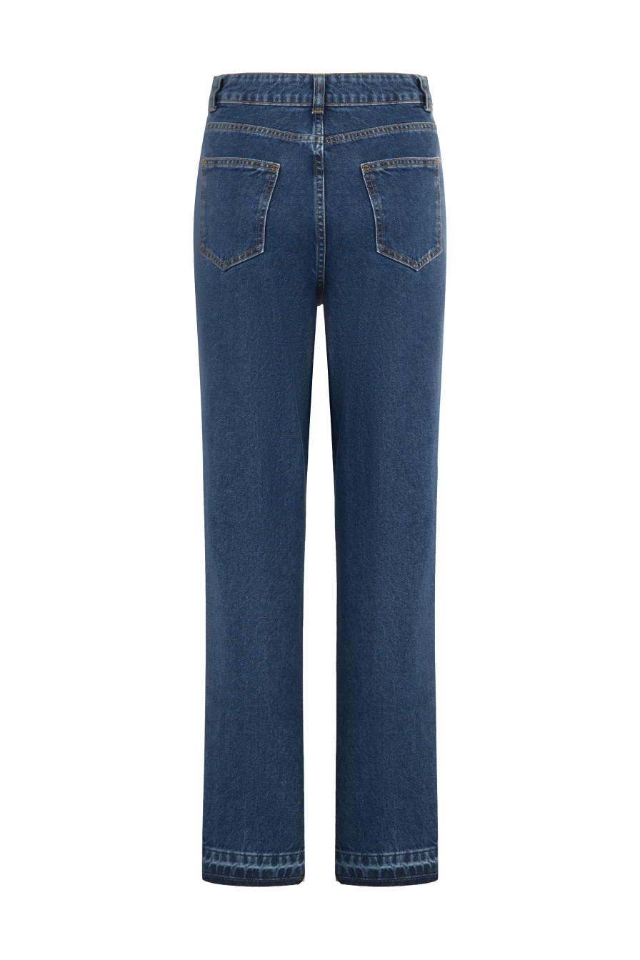 Paçası Yırtmaçlı Lacivert Denim Pantolon